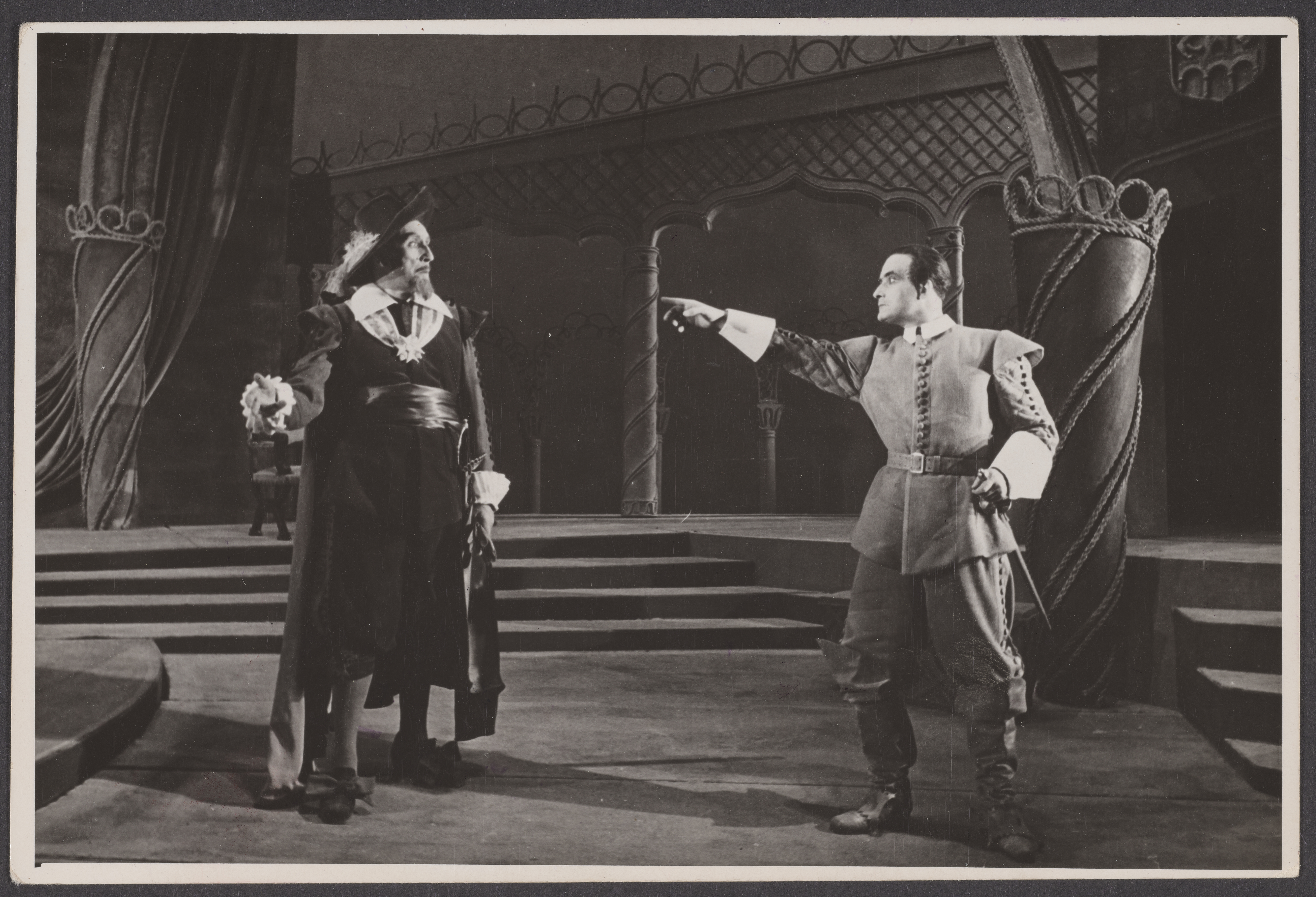| Data powstania: | 1948-01-08 | | Opis: | Na zdjęciu: Gustaw Buszyński - Don Gomez, Jan Kreczmar - Don Rodrygo | | Autor obiektu: | W. Fobert | | Właściciel obiektu: | Teatr Polski w Warszawie | | Właściciel kopii cyfrowej: | Teatr Polski w Warszawie |