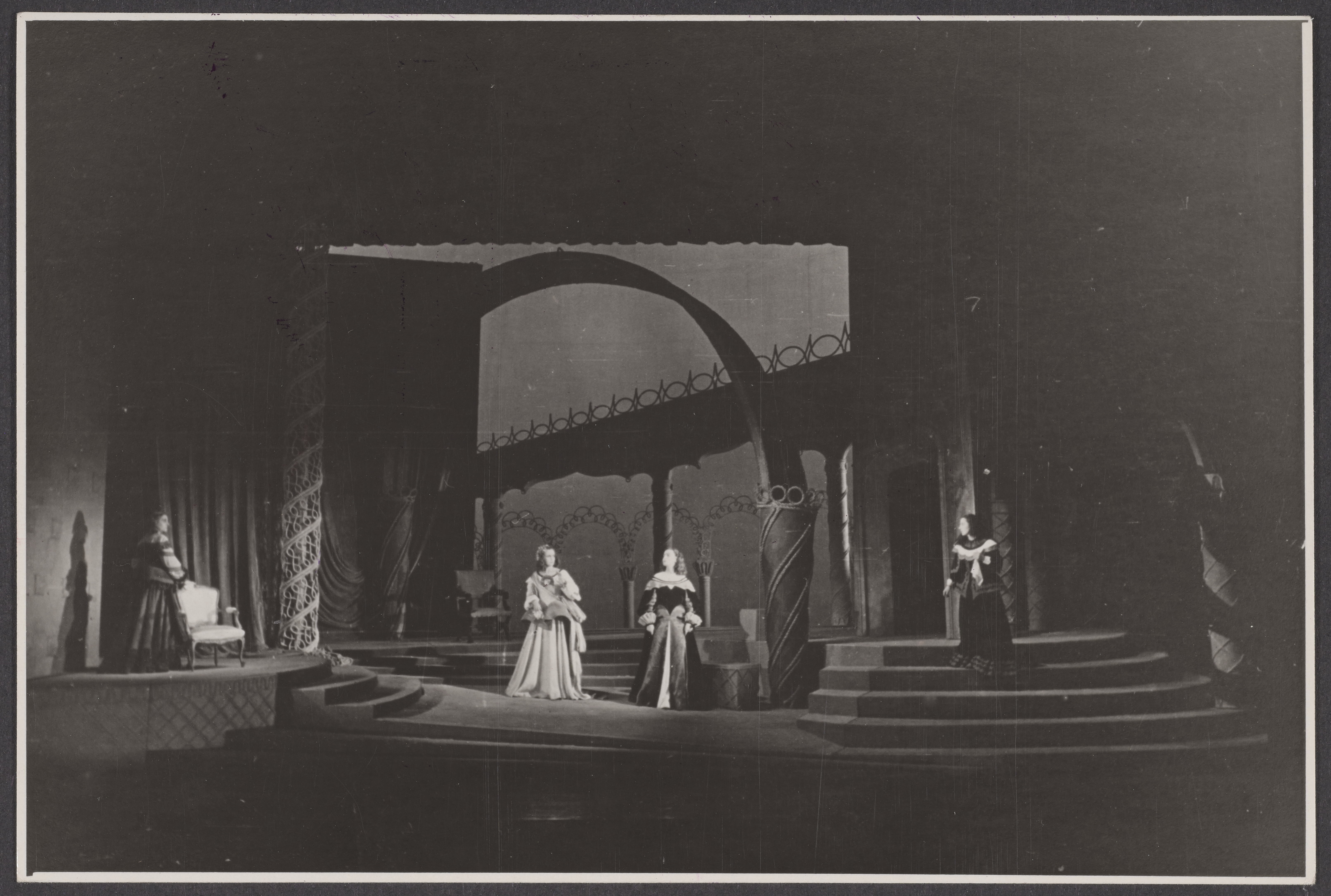 | Data powstania: | 1948-01-08 | | Opis: | Na zdjęciu: Zofia Małynicz - Eleonora, Elżbieta Barszczewska - Infantka, Nina Andrycz - Szimena, Melania Chrzanowska - Elwira | | Autor obiektu: | W. Fobert | | Właściciel obiektu: | Teatr Polski w Warszawie | | Właściciel kopii cyfrowej: | Teatr Polski w Warszawie |